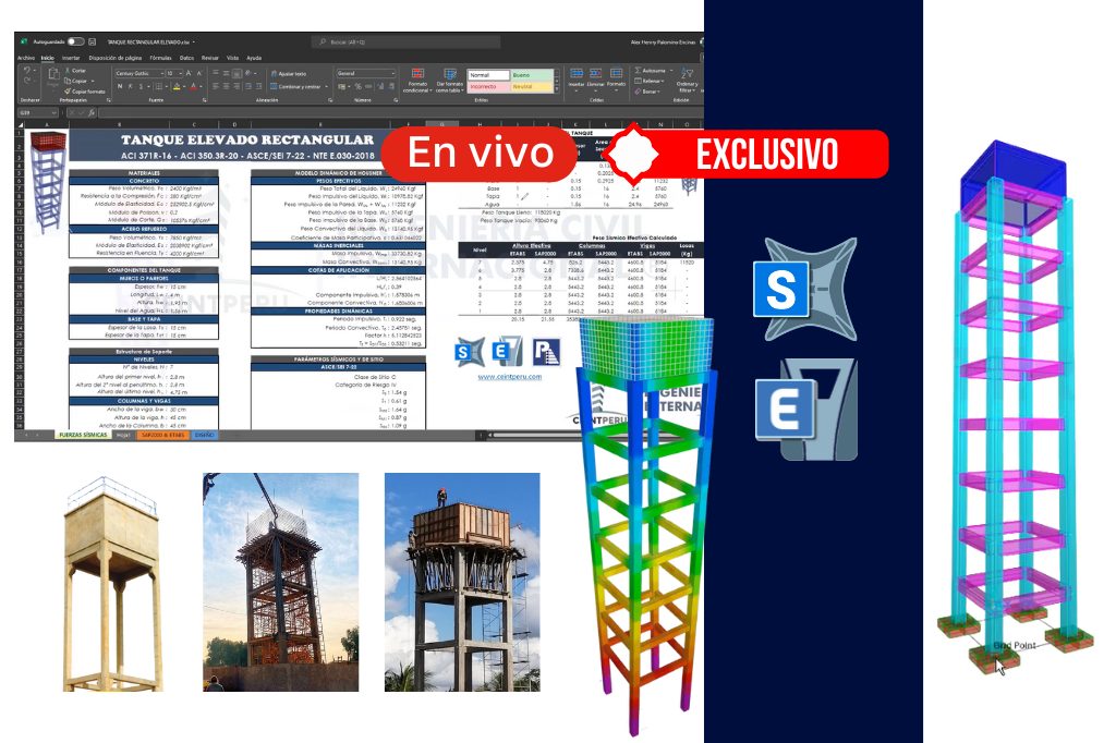 Aprende los criterios y secuencias para el modelamiento, análisis y diseño estructural de reservorios, tanques o depósitos elevados. Estas estructuras, al ser sistemas de un grado de libertad (1GDL), someten a sus componentes de soporte a estados extremos de esfuerzos y solicitaciones, por lo que su diseño debe abordarse con especial cuidado.