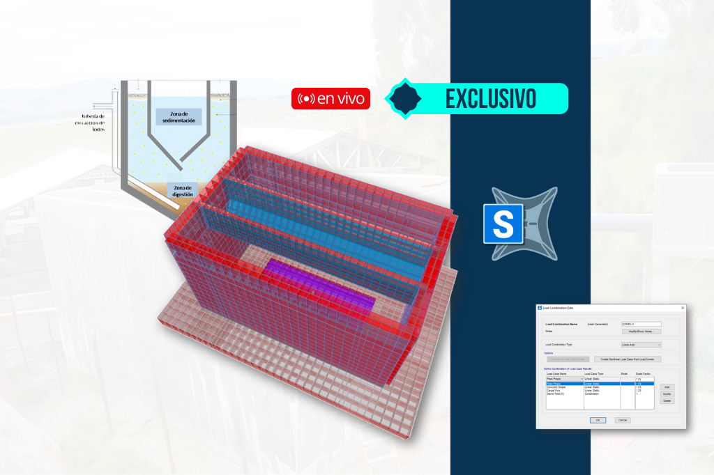 Se abordará desde la generación de la geometría en SAP2000, la asignación de cargas hidrostáticas e hidrodinámicas y condiciones de contorno, hasta el diseño integral de espesores, paredes, cámaras de sedimentación y cimentaciones, logrando una formación práctica y completa en el diseño estructural.