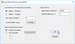 El peso Sísmico Pe, se calculó de manera automática con el software, ingresando el producto C = 0.5ZUS en la definición de usuario que se muestra a continuación: